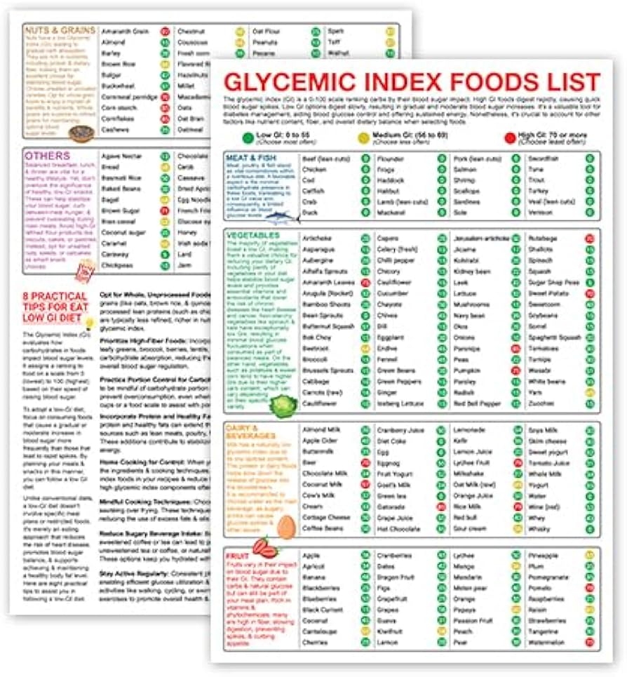 5M BOX Glycemic Index Food List Posters 2 Pack 12x18 Unframed Cheat Sheet Wall Art Food To Eat For Low GI Nutrition Kitchen Decor Amazon de Stationery Office Supplies