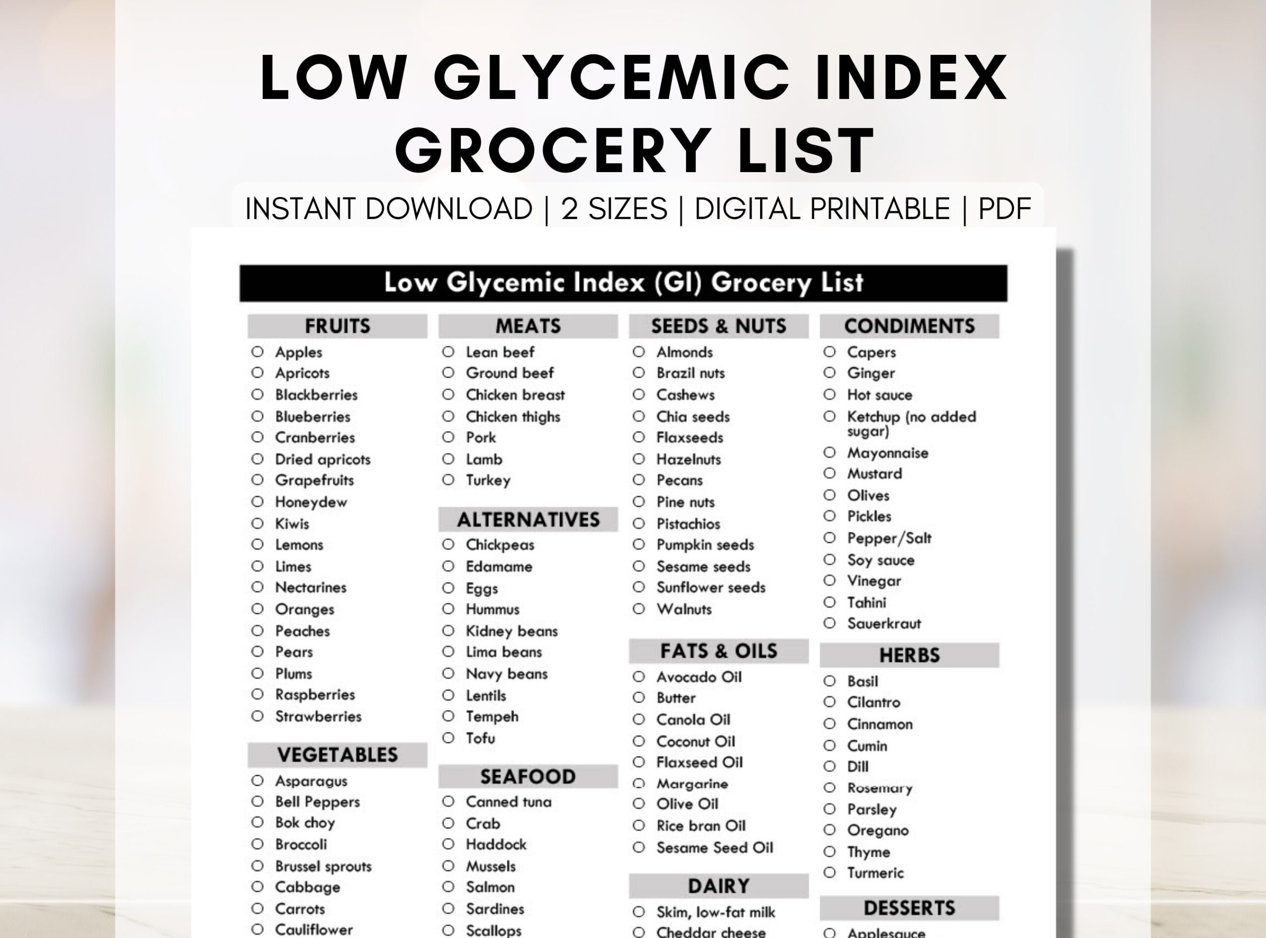 So next time you’re at the grocery store or planning your meals for the week, keep this printable list of low glycemic index foods handy to make healthier choices and take control of your health. Your body will thank you for it!