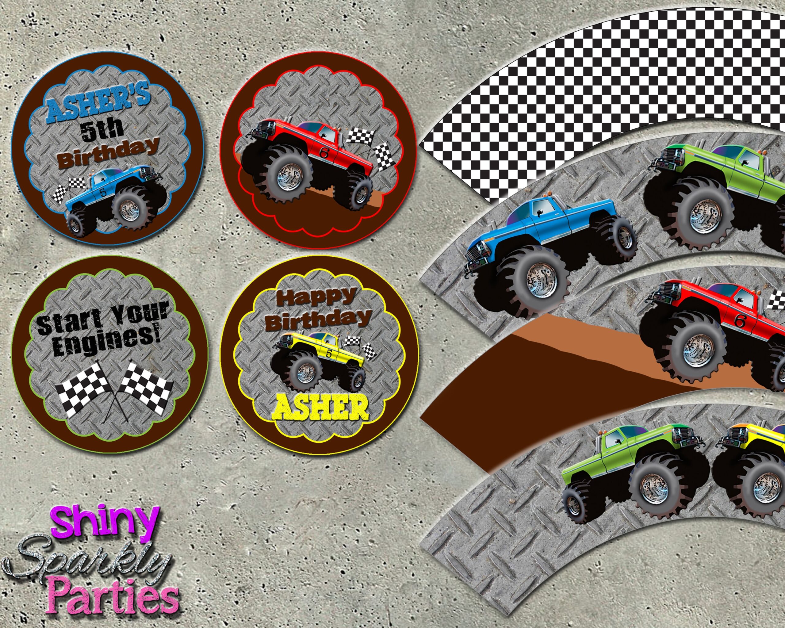 Monster Truck Birthday Cupcake Topper Digital File Printable Bobotemp