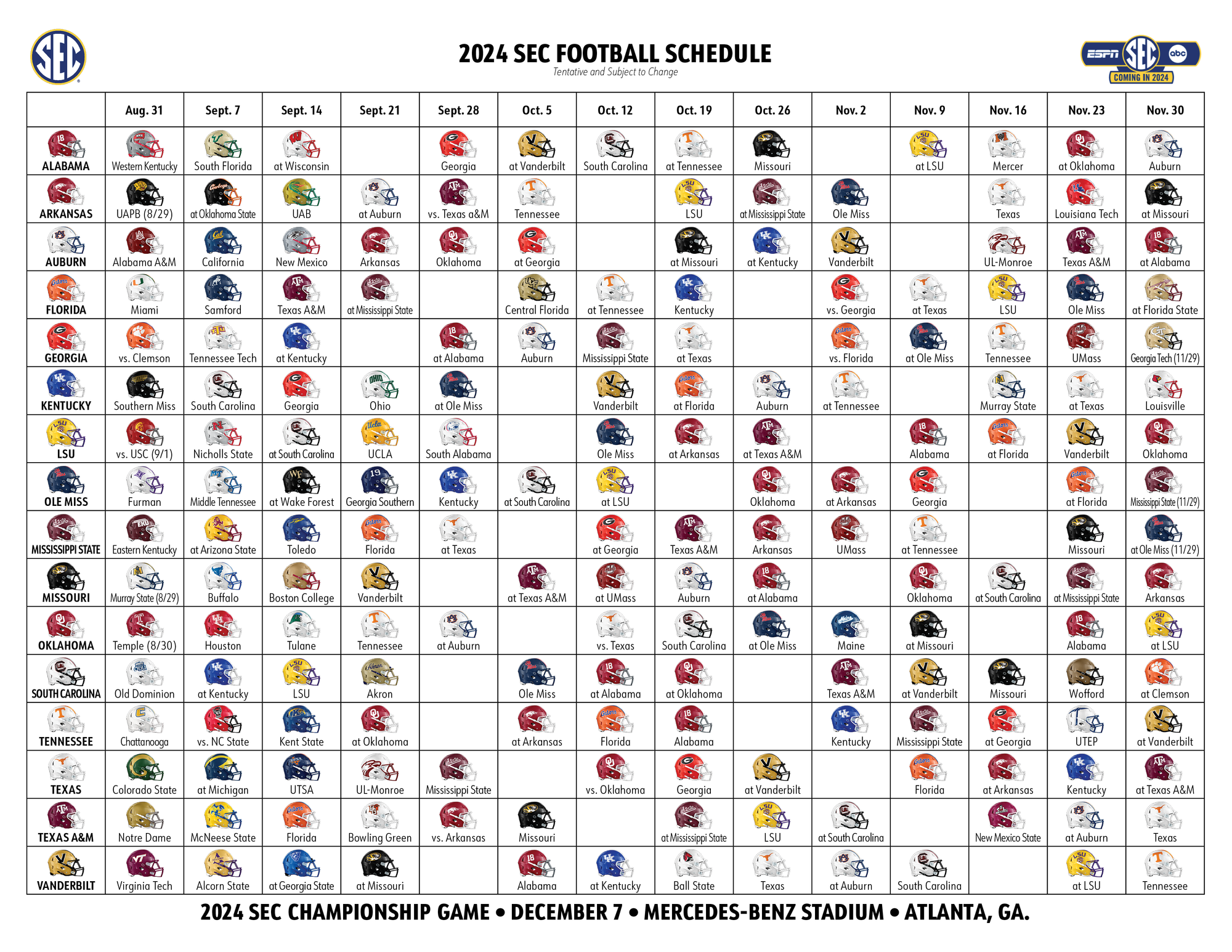 2025 SEC Football Helmet Schedule