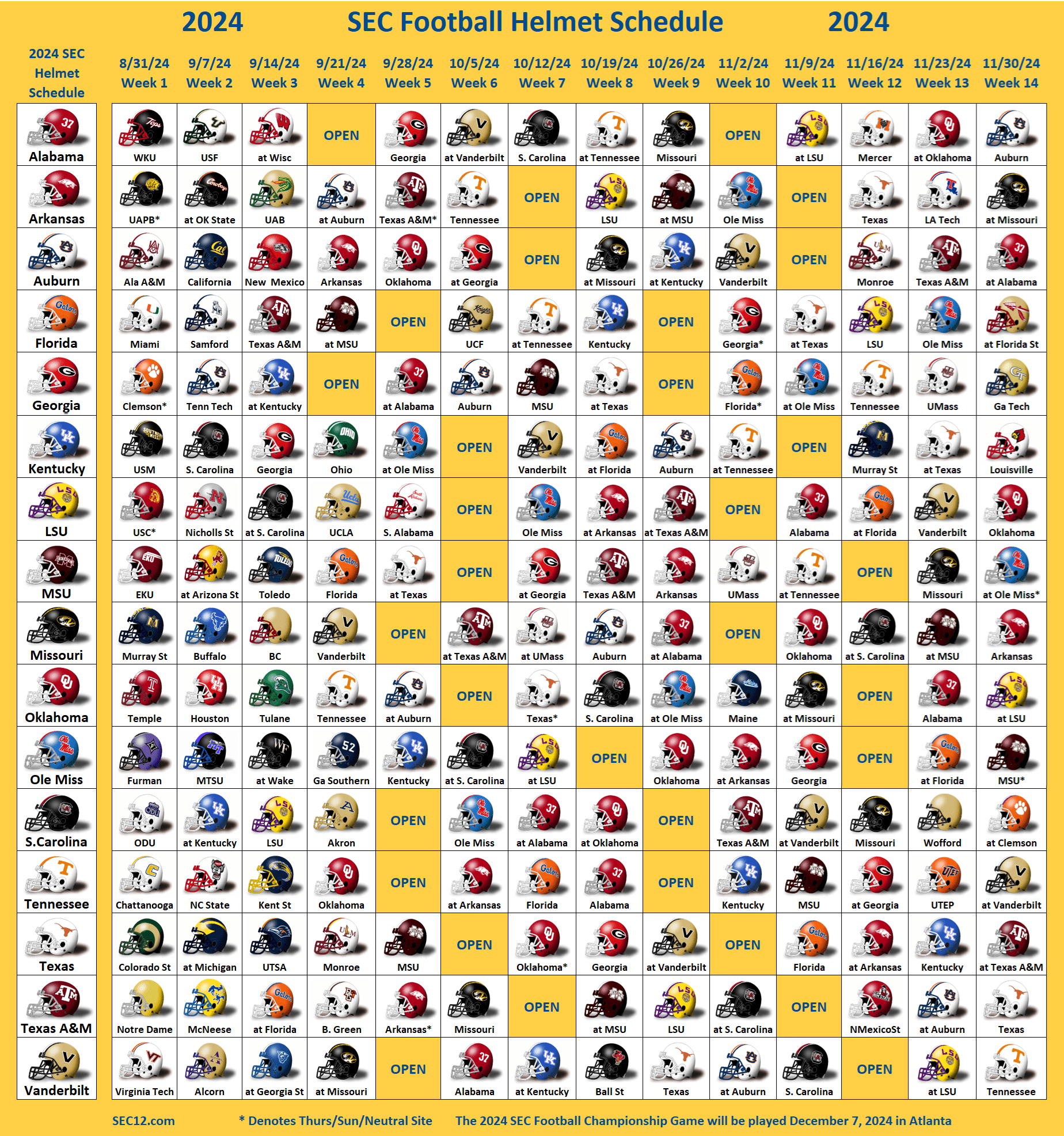 SEC Football Helmet Schedule SEC12 SEC Football