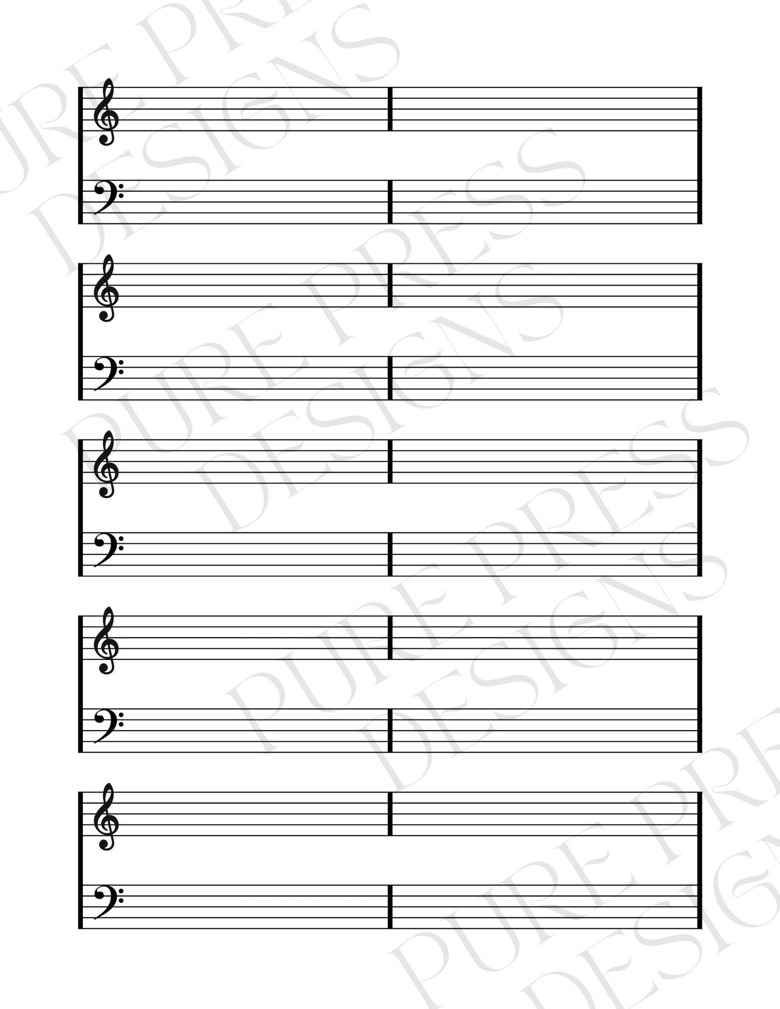 Printable Staff Paper Blank Sheet Music Treble Clef Bass Clef Etsy