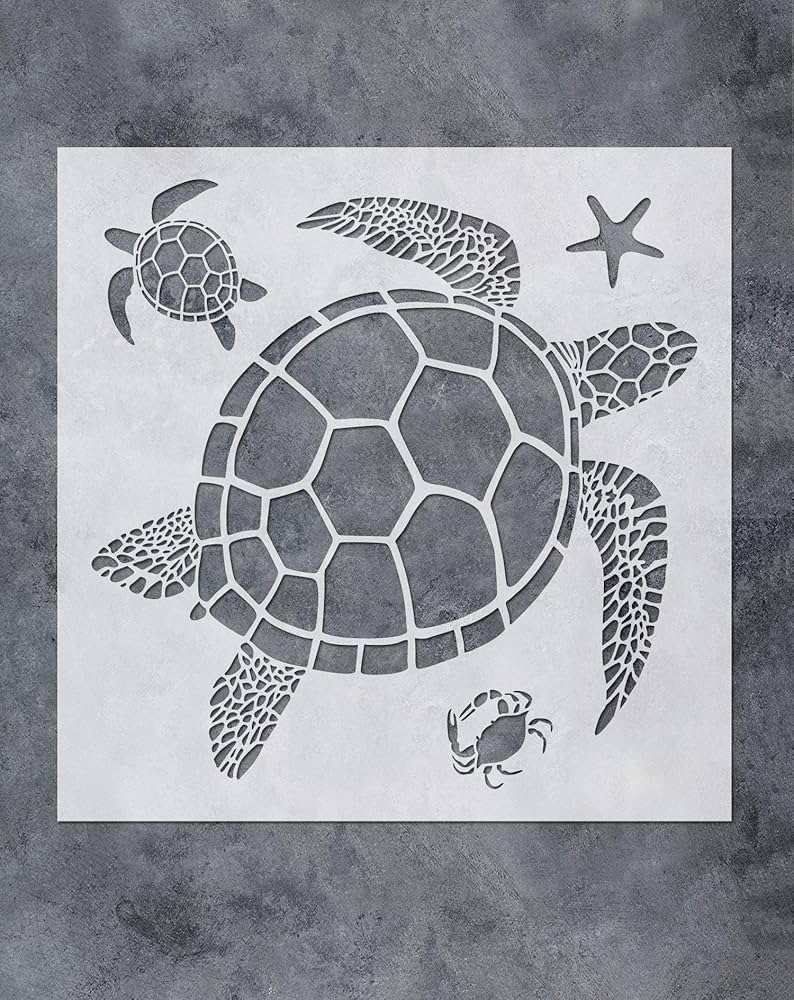 GSS Designs Sea Turtle Stencil 12 X 12 Inch Stencil For Canvas Wall Art Bathroom Teal Wall Decor Sea Creatures Sea Turtles Crabs Starfish SL 067 Amazon de DIY Tools