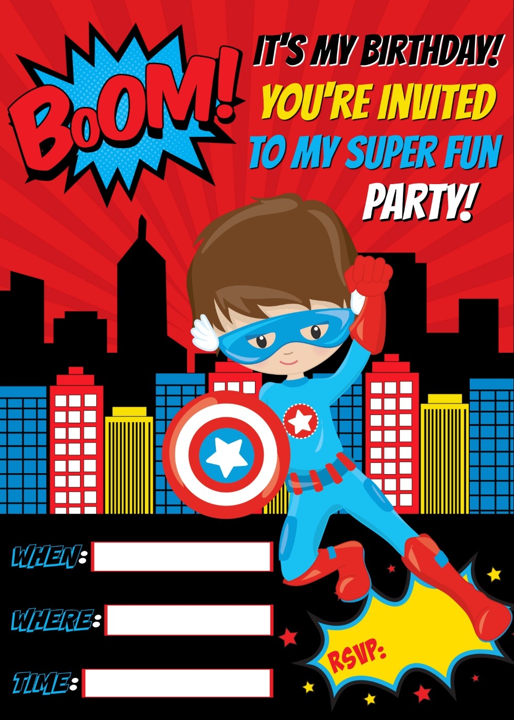 Superhero Birthday Party Photo Invitation Editable Template Digital Printable File Instant Download HP1 Worksheets Library