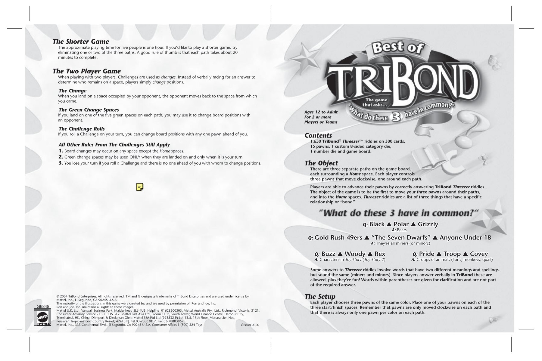 G6848 Best Of Tribond Game Mattel
