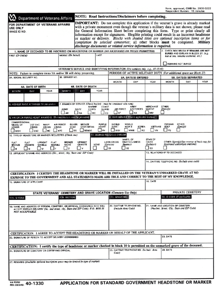 VA Form 40 1330 2024 2025 Fill Forms Online PDF Guru