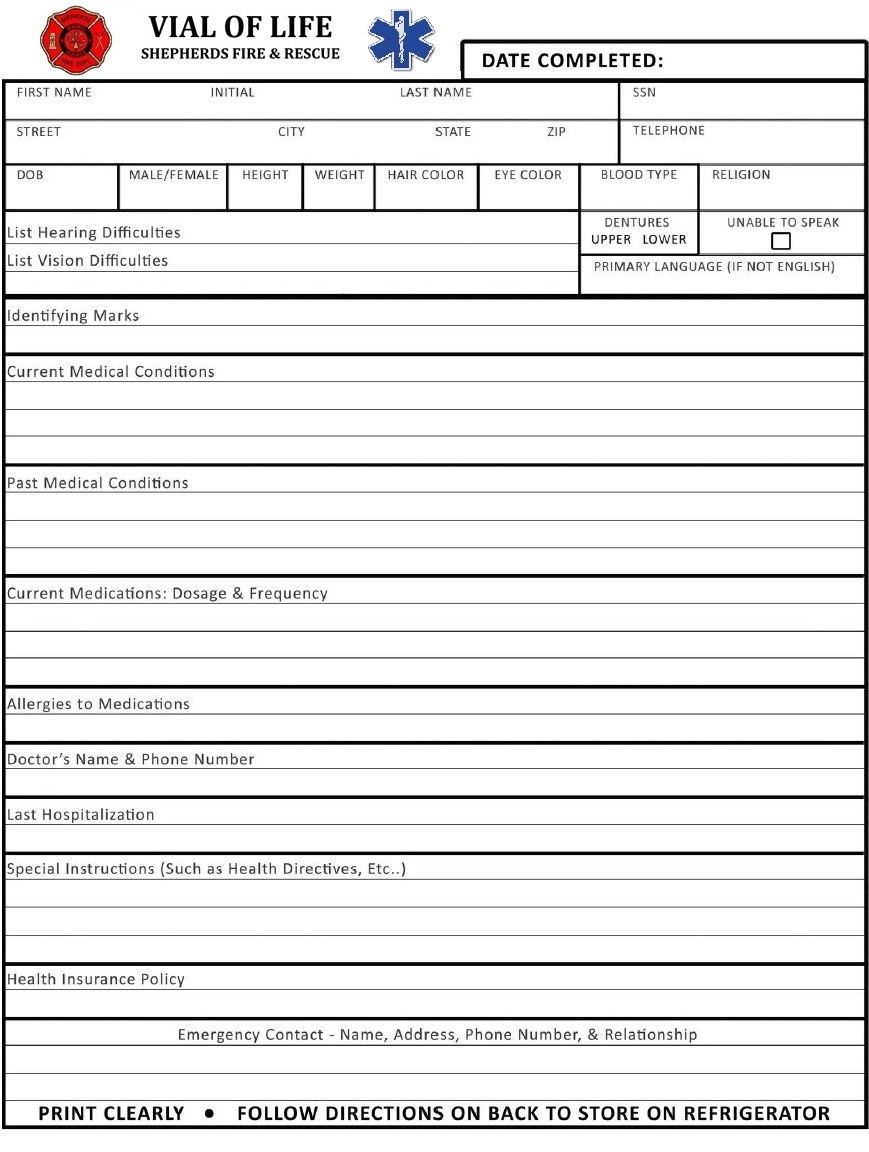 Don’t wait until it’s too late to compile essential medical information. Download printable Vial of Life forms today and take the first step towards safeguarding your health and well-being. With just a few minutes of your time, you can create a valuable resource that could potentially save your life in an emergency.