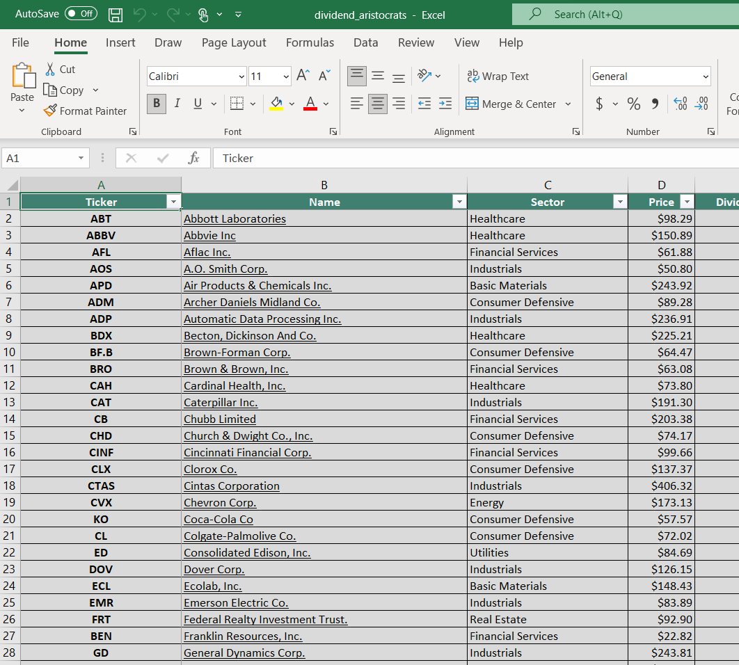 2025 Dividend Aristocrats List Updated Daily All 69 Analyzed
