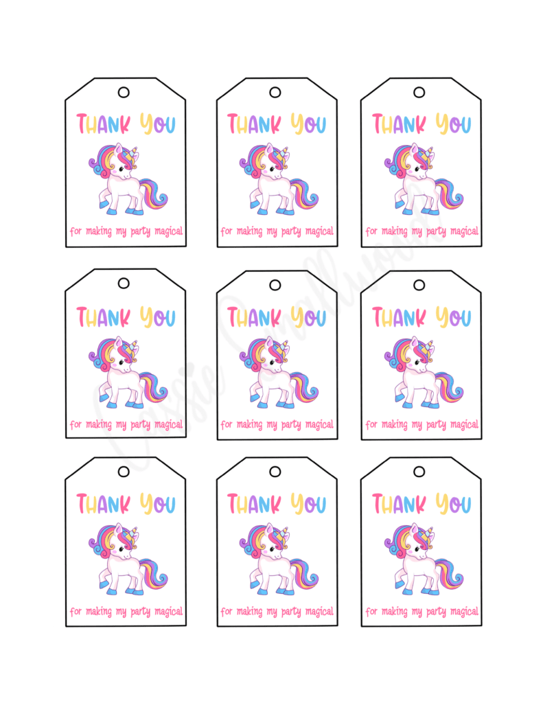 With cute unicorn designs and vibrant colors, these Thank You Goody Bag Tags will add a touch of whimsy to your party favors. Simply print them out, cut them, and attach them to your goody bags for an extra special touch. Your guests will love them!
