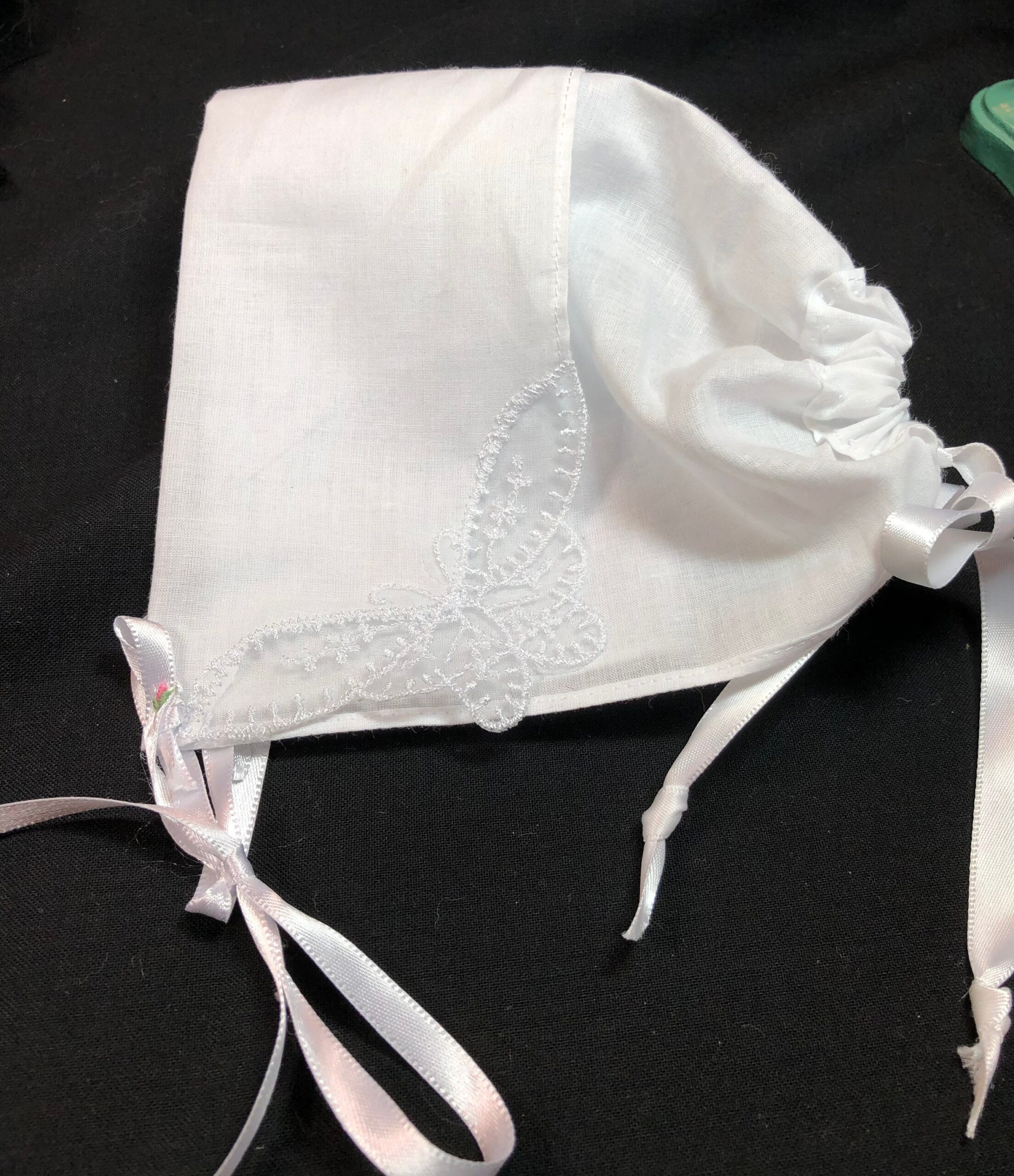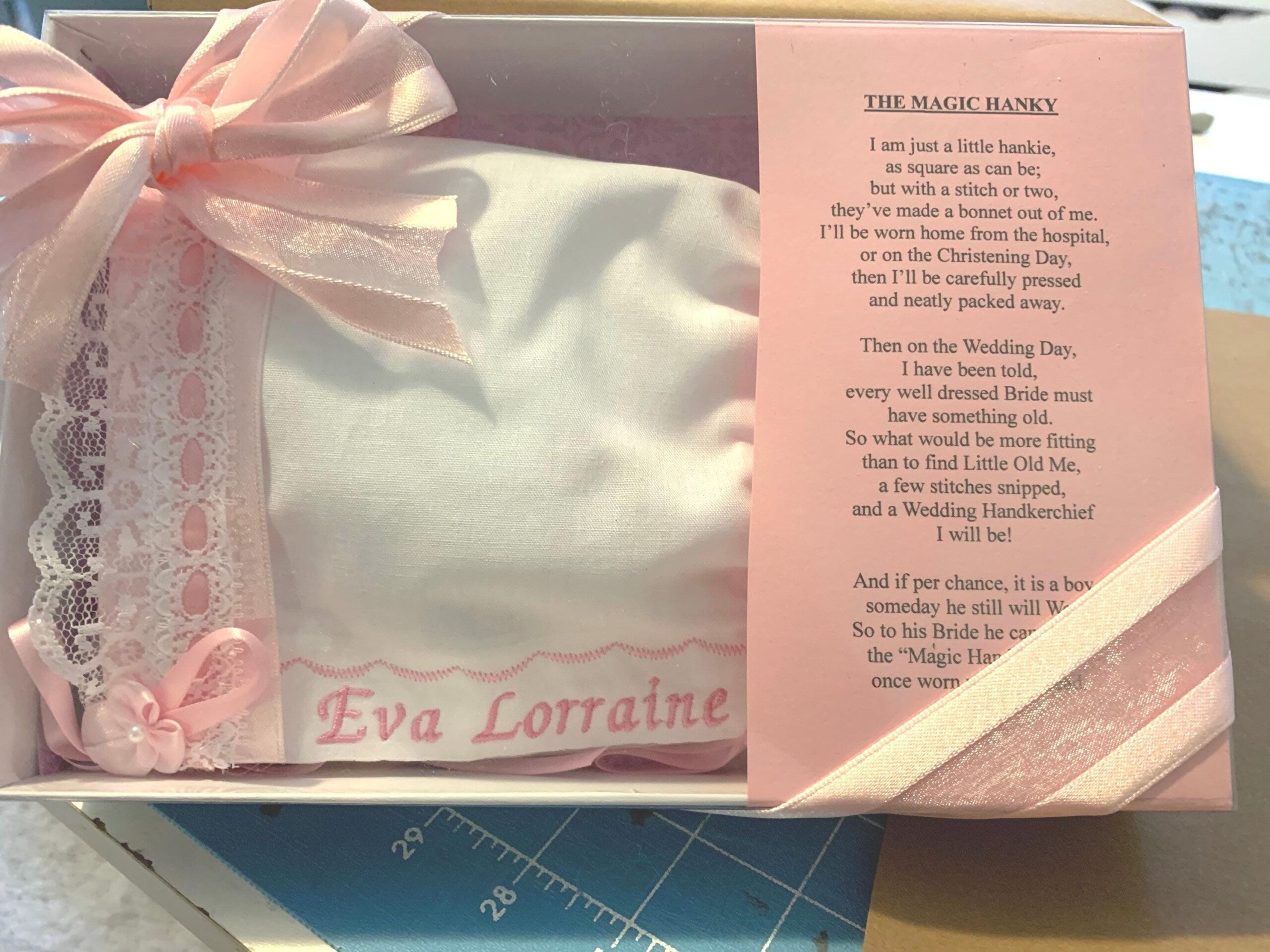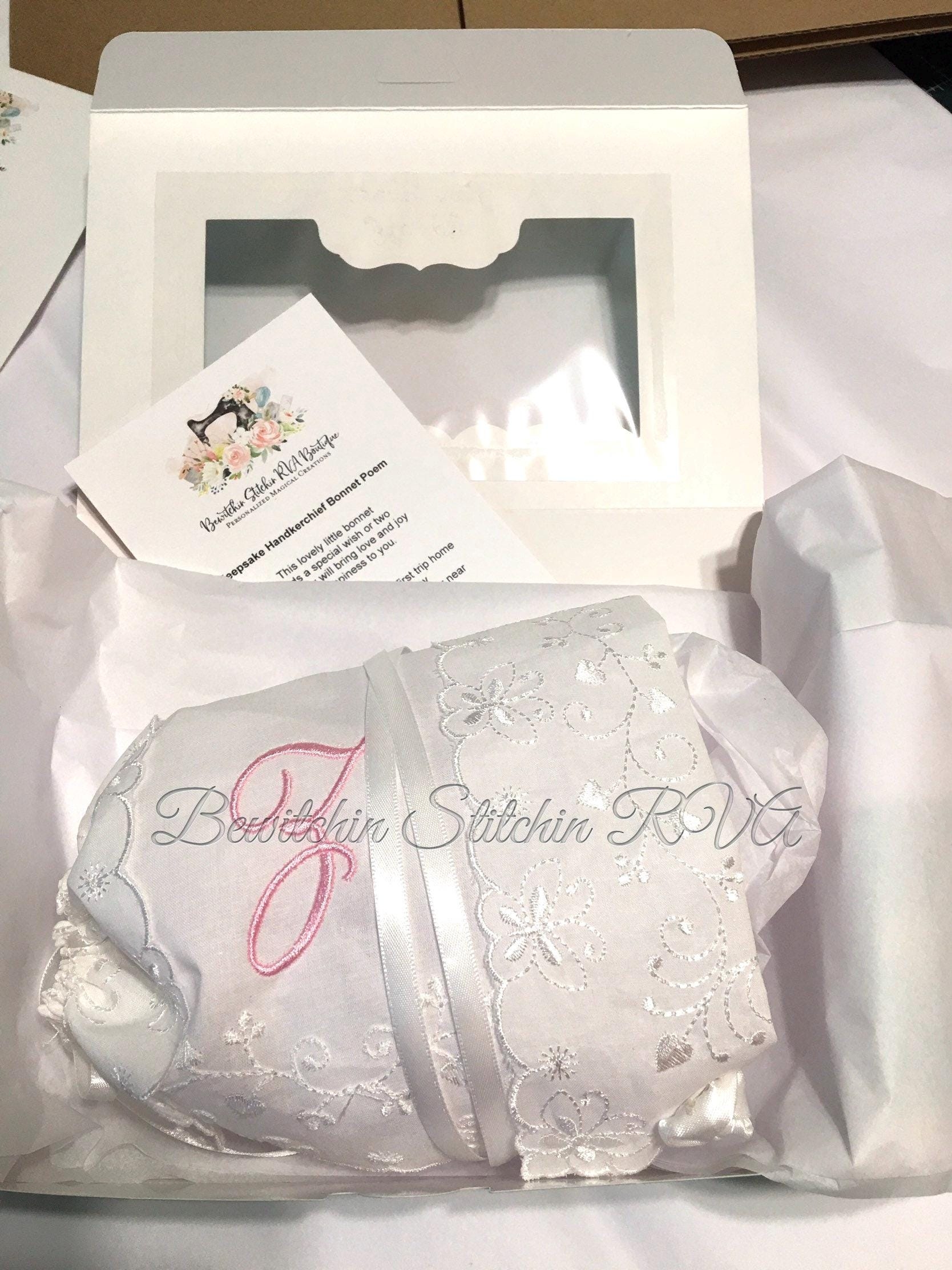 Monogrammed Handkerchief Baby Bonnet With Poem Magic Baby Bonnet Christening Bonnet Keepsake Handkerchief Bonnet With Box Handmade Etsy
